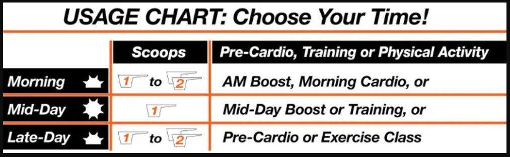 取 1 勺(7 克)與 180 至 240 毫升水混合,即刻飲用。運動前 2-4 小時服用。
